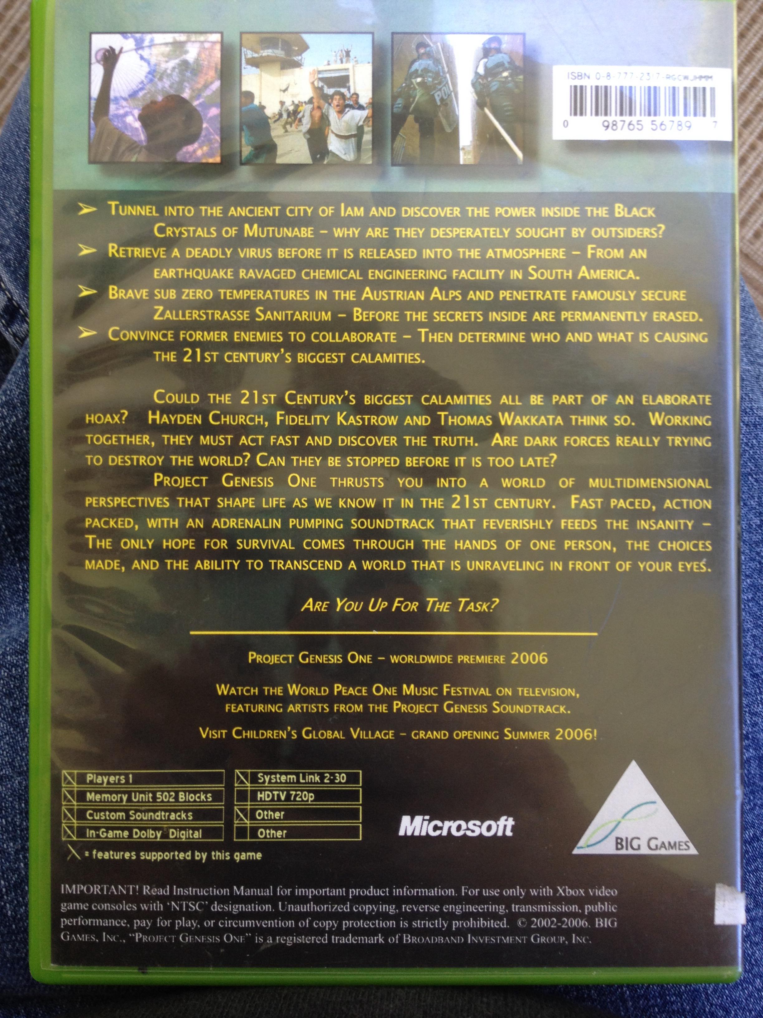 Hey guys, so I found this http://www.reddit.com/r/gamecollecting/comments/27erd1/im_stupid_and_deleted_the_post_here_is_the/ post on reddits gamecollectors forum about this guy who found this strange game called Project Genesis One. Has anyone ever heard of it? I cant find ANYTHING about the game or its developers, or anything mentioned on the case for that matter, online. Here are the pictures he posted The last picture of the disc is pretty interesting. 'Unpublished confidential work'. Anyone have any thoughts? Also, this is my first post but Ive lurked for some time now. Love this place!