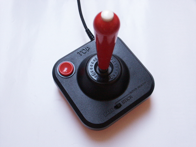 It's a TAC-2 digital joystick. Probably the most famous joystick there is. Quite good and sturdy, but the fire button gets worn out, so be prepared to fix that if you get one untested. And I do mean _button_, singular. Both of the buttons control the same circuit, so which one is worn out depends on if the player was left-, or right-handed. Compatible with all Atari ST|STe models and all Amigas. Probably compatible with the Atari Falcon too. I prefer the Wico Bat-handle*, but the TAC-2 will do nicely. * http://www.syntaxerror.nu/joy002.jpg