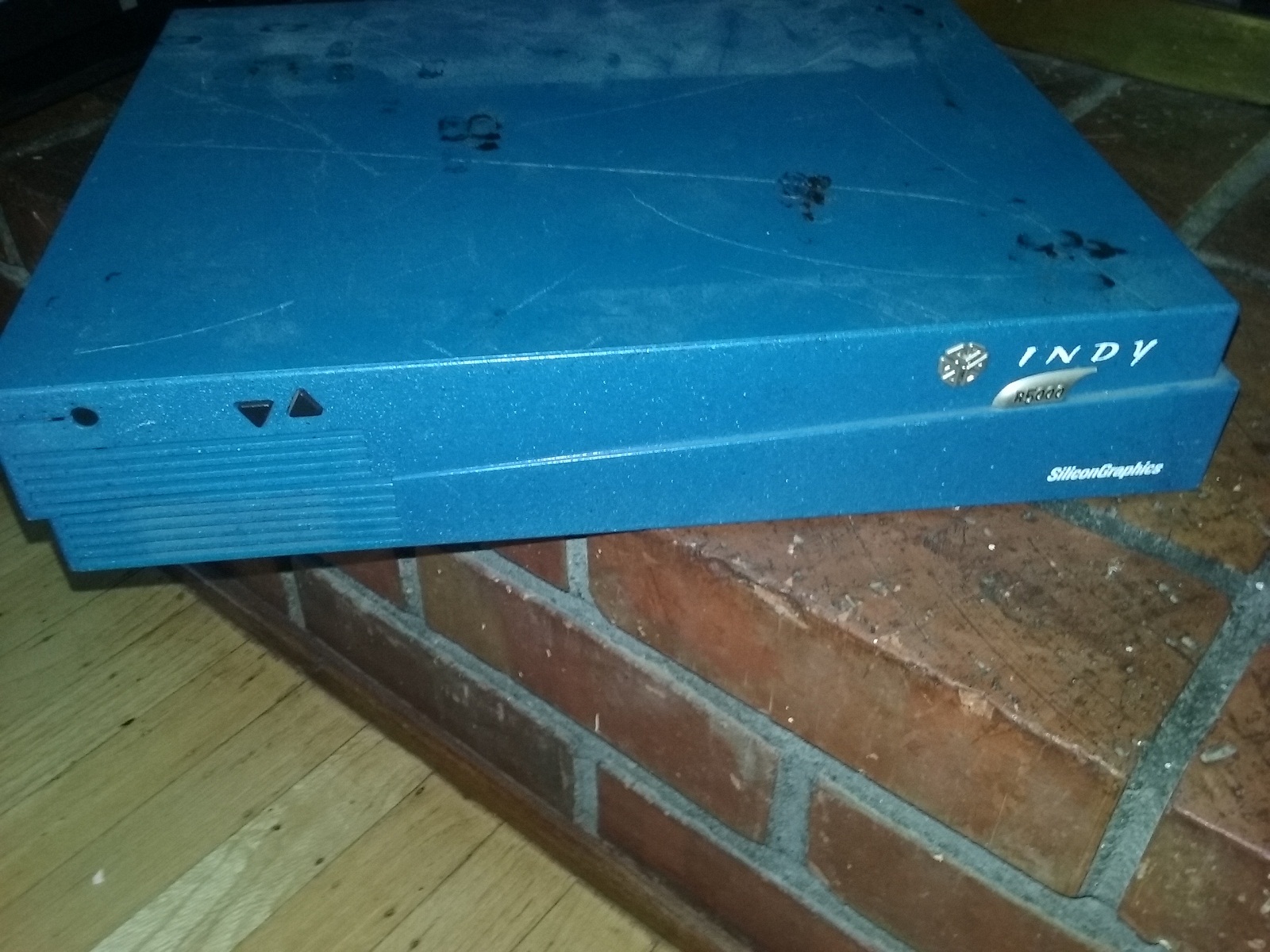I was at a Junk store and found these two SGI Indy R5000 workstations. No hard drive or memory unfortunately (and not a N64 dev station), however I did notice one thing. If anything it's a cute find for $6 each heh.
