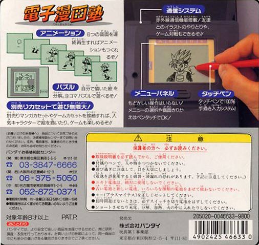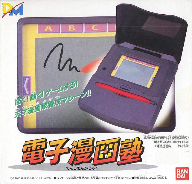 Thanks for sharing. The device's name should be correctly transliterated as "Denshi Manga Juku". I remember seeing an ad in an old Family Computer Tsuushin (Famitsu) magazine from late 1994. Will scan it as soon as I can. As Shou has said elsewhere the main purpose was to draw manga characters by following the instructions and templates on screen. It's probably worth something mainly to fans of the featured mangas. I don't know anything about the games but some Capcom IP such as Rockman and Street Fighter was also released on the system. Check out these threads for some info: https://www.gamengai.com/forum/viewtopic.php?f=2&t=3114 http://www.assemblergames.com/forums/showthread.php?37624-Bandai-Design-Master-Densi-Mangajuku Maybe AG member scaramouche can tell us more about the games on the system although I can't imagine them to be very exciting (the device probably displays still images only).
