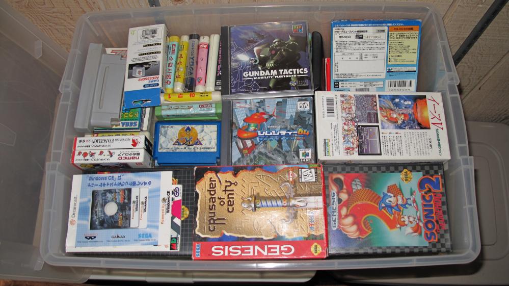 That's how I store most of my shit. Just whatever fits wherever. Then I list the contents on the top in marker (like 3xN64, NGPC+3x, SNESx30, etc etc)