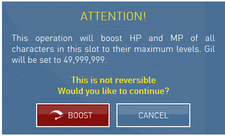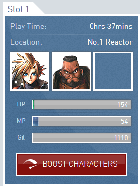 The models look nice, backgrounds look like ass. The upscaled 4:3 ratio isnt the end of the world but I'm getting a little bit of black border at the bottom too -_- Also, if you want you can stretch to fill the screen. From the launcher go to settings, video tab, then untick "Keep aspect ratio" then click ok. The game doesnt look too deformed at first glance, but I didnt play with it much yet, bed time. I got an achievement for first fight and doing the Cloud & Barret limit breaks thus far. As for the booster option, You have to click to "View Online Profile" in the game launcher: Then click "Character Booster" in the top right of your page: Then click boost characters: Then click Boost It seems like a pretty pointless feature IMO. I quite enjoyed the grind. You and me both. Luckily I bought the original OST from Lik Sang or Play Asia or something nearly a decade ago so I can rip the tracks at will. Hopefully a copy and paste to get rid of the remixed versions will do the job. I'll try just the battle music for now though as it will be the one I hear most frequently.