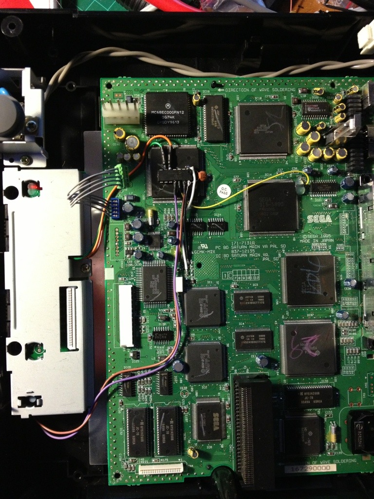 I hope it's okay I use this old thread to ask this question. I found a nice Saturn on a local flea-market today. I wanted to mod it with a 50/60Hz mod and unibios and then sell it since I already have a working Saturn. I have modified several Saturns before, and most of them have turned out really nice. A few times though I have ended with nothing but a black screen after doing the 50/60 mod. And sure enough this happened for me today as well I'm fairly good at soldering, and I checked thoroughly for shorts when soldering the bios and lifting pin 79 on the VDP. I also use liquid flux to ensure good soldering, so there shouldn't be any problems there. I'm really puzzled why the Saturn has died after modding it. I have tried resoldering pin 79 to it's original position and even the solder pad on "SW4", just in case the soldering pad under the IC were bad after lifting the pin. But it still doesn't work. My guess is that the Saturn is completely dead now, I just don't understand why Any thoughts and possible help would be greatly appreciated Here are a few pictures of the mod: Bios: 50/60Hz mod: