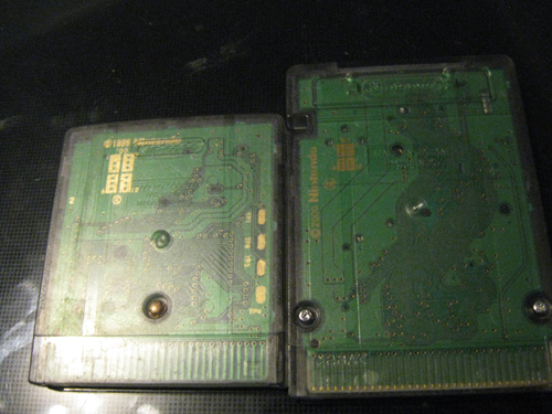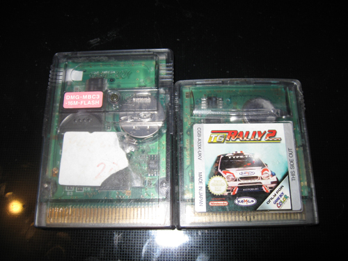 havent got a screwdriver small enough ill try get one today but i can make out some of the chips one says MBC3 A F-2 015U75 another says 6735 9100 cant see the other 2 bigger chips without a screwdriver s= I have never seen a cart like this before so its certainly a rare cart right ? i am just wondering its origins is it a dev cart ??? or a prototype ? or something else