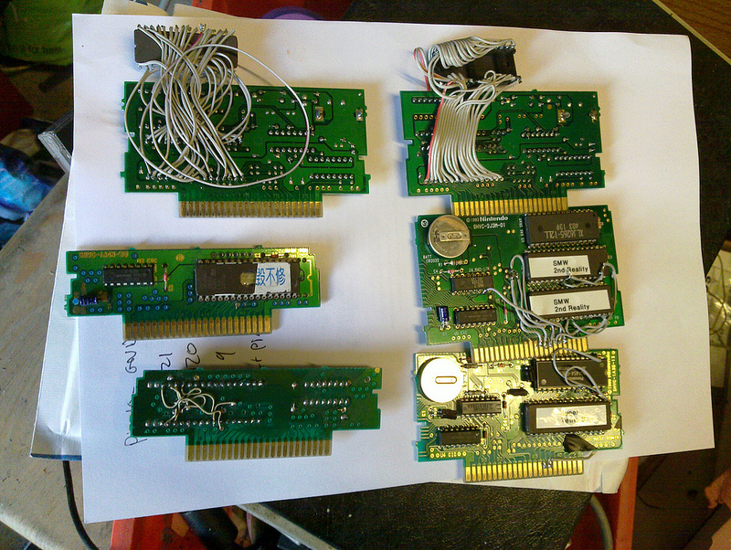 Yeah, this was a bit of a balls up if I'm totally honest. I didn't notice I'd used the wrong donor cart until I had both EPROMs soldered down, was p*ssed off so I got a bit 'chop happy' and just cut all the lines from 40-48. Plus the tip on my iron at the time wasn't exactly slender (I know, excuses, excuses). Plus I didn't realise I could of burnt "Return to Dinosaur Land" rather than 2nd Reality, which looks to be the better game. Still, learning things all the time and I'm getting better at it each time. Here's a pic of all the ones I done so far: The top two are the first couple I did, where I wasn't too sure about anything so basically wired up everything. Middle and bottom left are socketed HiRom/LoRom carts that are a lot tidier. Bottom right is a Super Tetris 3 that I did a good job on but then it didn't like the large SRAM (thought it was being run on a copier) so I slapped a copy of wires on and never got around to tidying it up. Just waiting for a Derby Stallion 3 to turn up which is either going to be a LttP: Parallel Worlds or SMW: Return to Dinosaur Land.