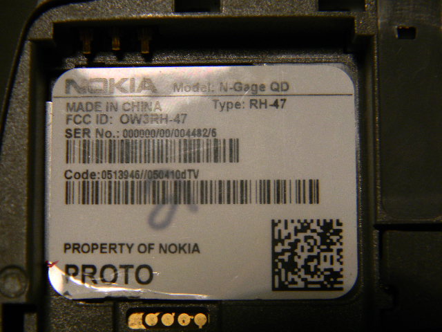 Hello, well a about a year and a half ago I went to the flea market as usual and I found two N Gages, a QD and a standard model for ten bucks, so I bought them and took them home. However, all was not normal for when I opened up the battery covers on them, I discovered something very odd, take a look at the pics. This is a QD Model, and the interesting thing is that it says Proto and Property of Nokia, also the OS is slightly different compared to a standard N Gage. Now the weird thing about this N Gage (This is the standard model N Gage) is that it says made in Finland, while my other N Gages say made in China, it is property of Nokia, and the model number is XXXX So what do you guys think?