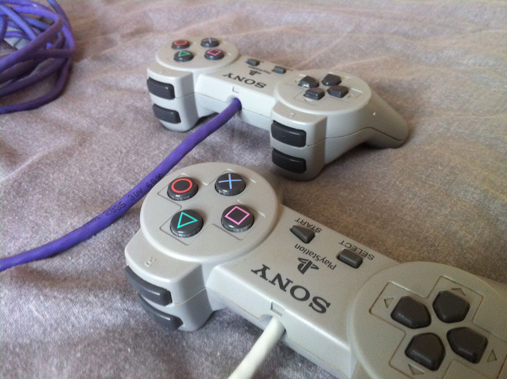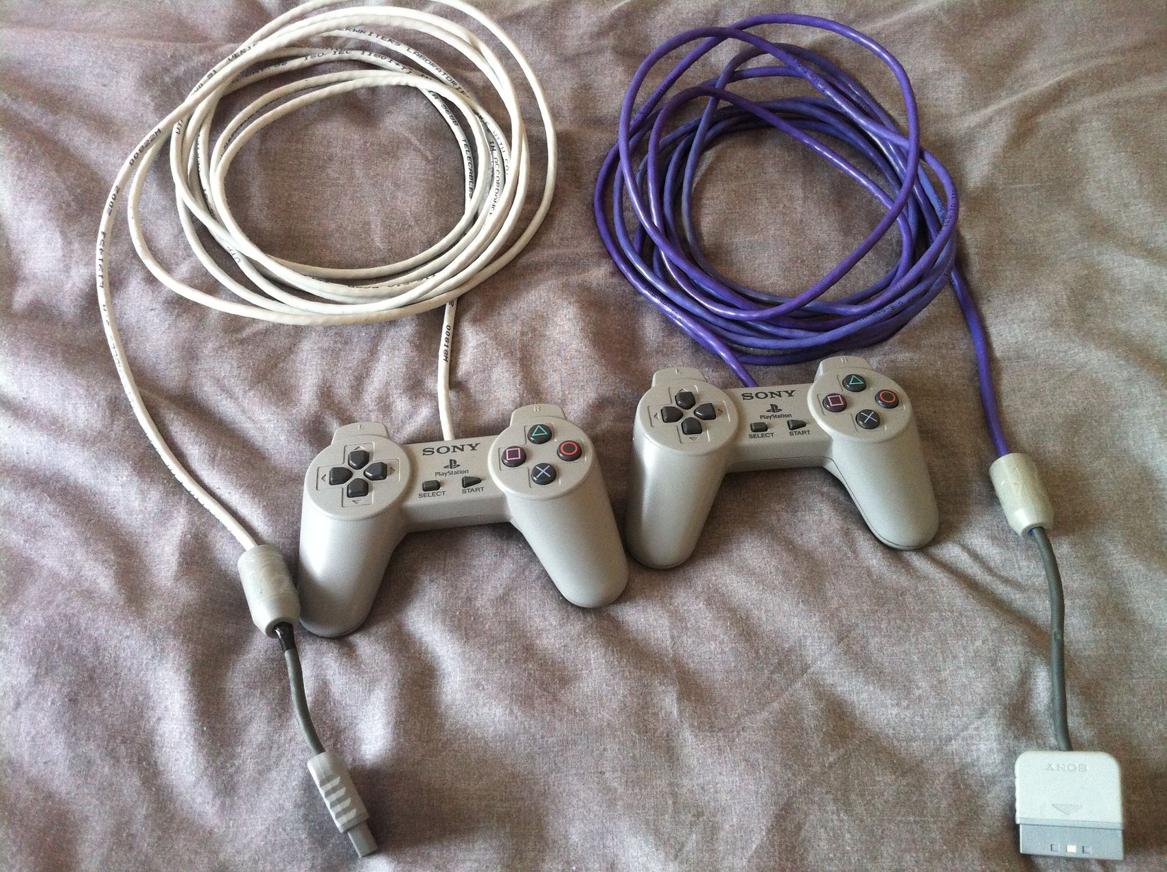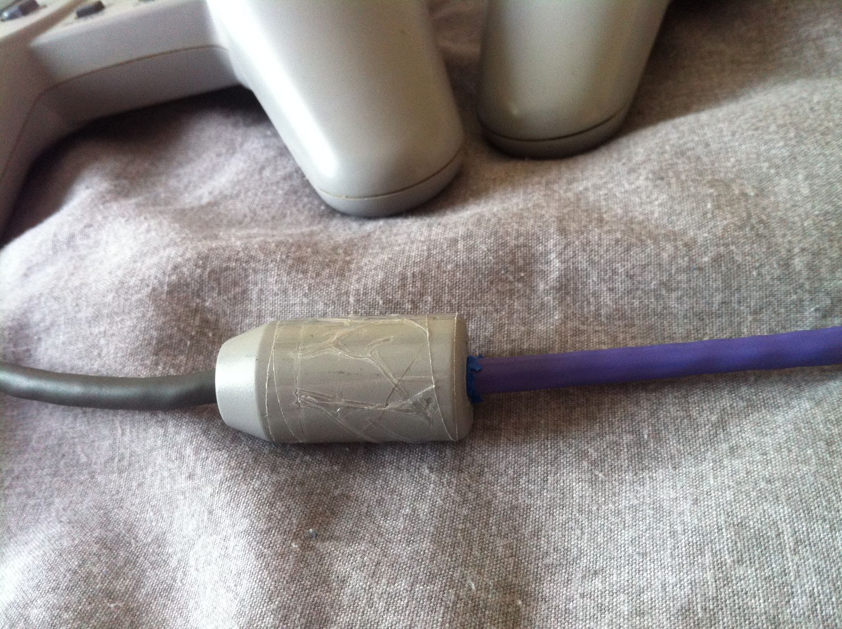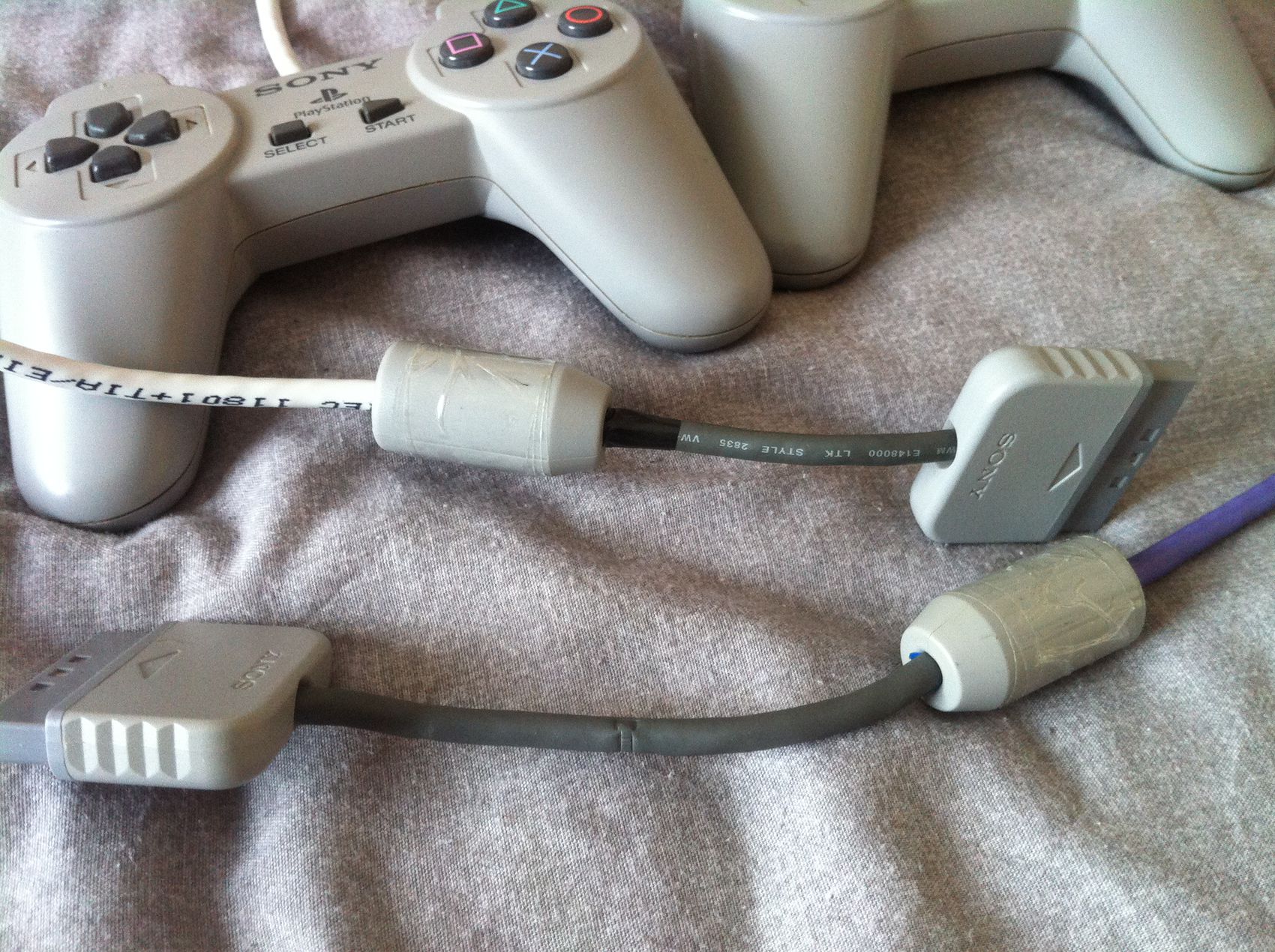 Every few years I come back to the Playstation, this time around I'm playing through the Tekken series, the only problem is the original controllers cable is way to short, my solution was to swap the cable for some cat5e/utp, this is my crude attempt without soldering. I found the white cat5e too stiff so I've ordered some dark grey utp to do a better job with solder and hot glue sometime this week.