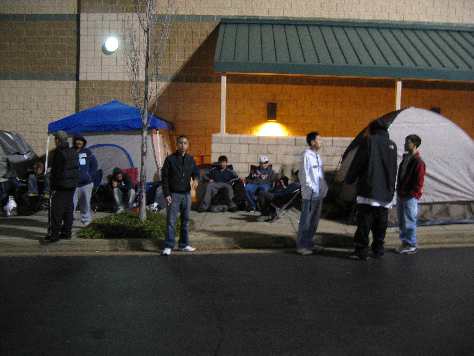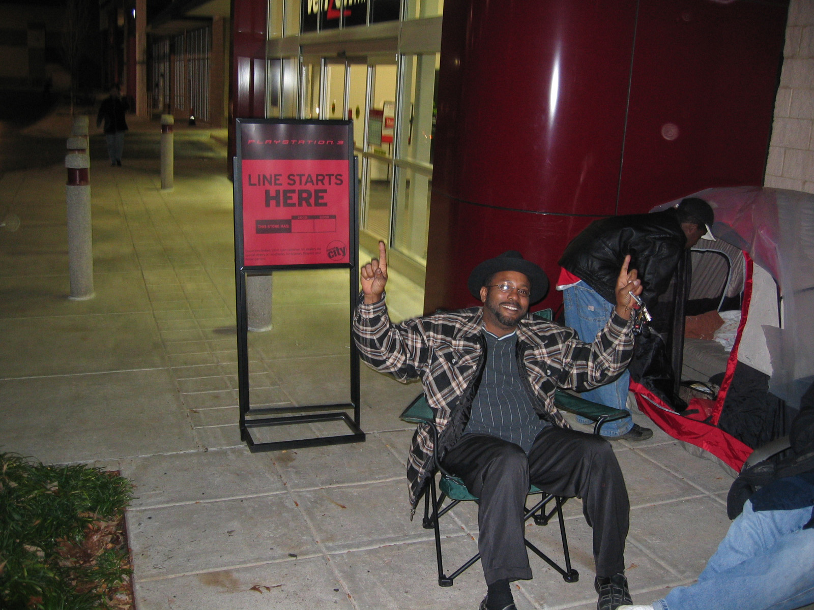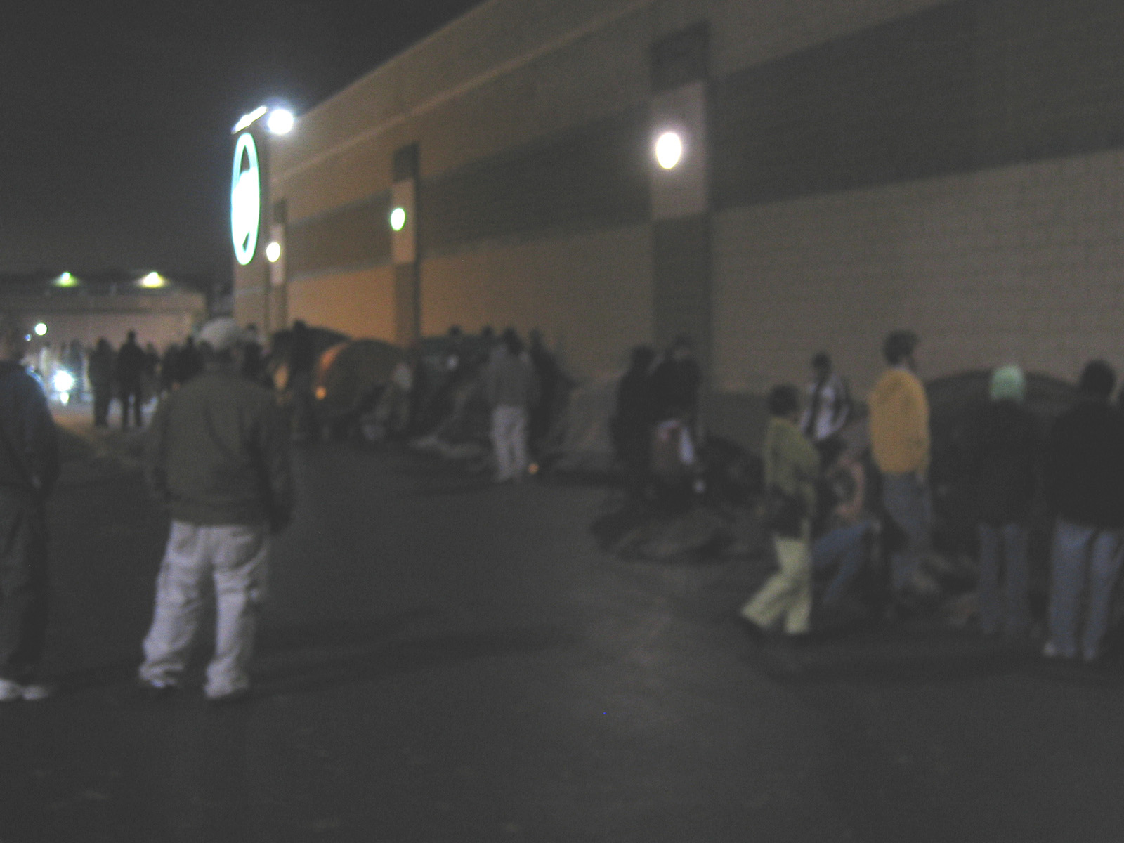 Some areas have had people lining up for the launch for a while now. After seeing a post that said the Circuit City here already had more than enough people waiting in line to account for their entire allocation, I decided to go over and take some pictures. By the way, this is the Circuit City in Rockville that is one of the six CC's doing a midnight opening with 100 consoles. Feel free to add pictures of your own lines to this thread. The pics are 1600x1200, so I am just going to link them for now: http://mouse.pouncingkitten.com/other/cc-ps3/1-front-facade.JPG http://mouse.pouncingkitten.com/other/cc-ps3/2-first-in-line.JPG http://mouse.pouncingkitten.com/other/cc-ps3/3-front-group.JPG http://mouse.pouncingkitten.com/other/cc-ps3/4-front-of-line.JPG http://mouse.pouncingkitten.com/other/cc-ps3/5-front-middle.JPG http://mouse.pouncingkitten.com/other/cc-ps3/6-corner-front.JPG http://mouse.pouncingkitten.com/other/cc-ps3/7-corner.JPG http://mouse.pouncingkitten.com/other/cc-ps3/8-corner-alley.JPG http://mouse.pouncingkitten.com/other/cc-ps3/9-middle-alley.JPG http://mouse.pouncingkitten.com/other/cc-ps3/10-dark-alley.JPG http://mouse.pouncingkitten.com/other/cc-ps3/11-end-of-line.JPG http://mouse.pouncingkitten.com/other/cc-ps3/12-fuzzy-time.JPG I tried to show my watch (7pm, 11/14) in the last pic. First guy said he was there since Monday, but I didn't think to ask if he meant this Monday or last Monday.