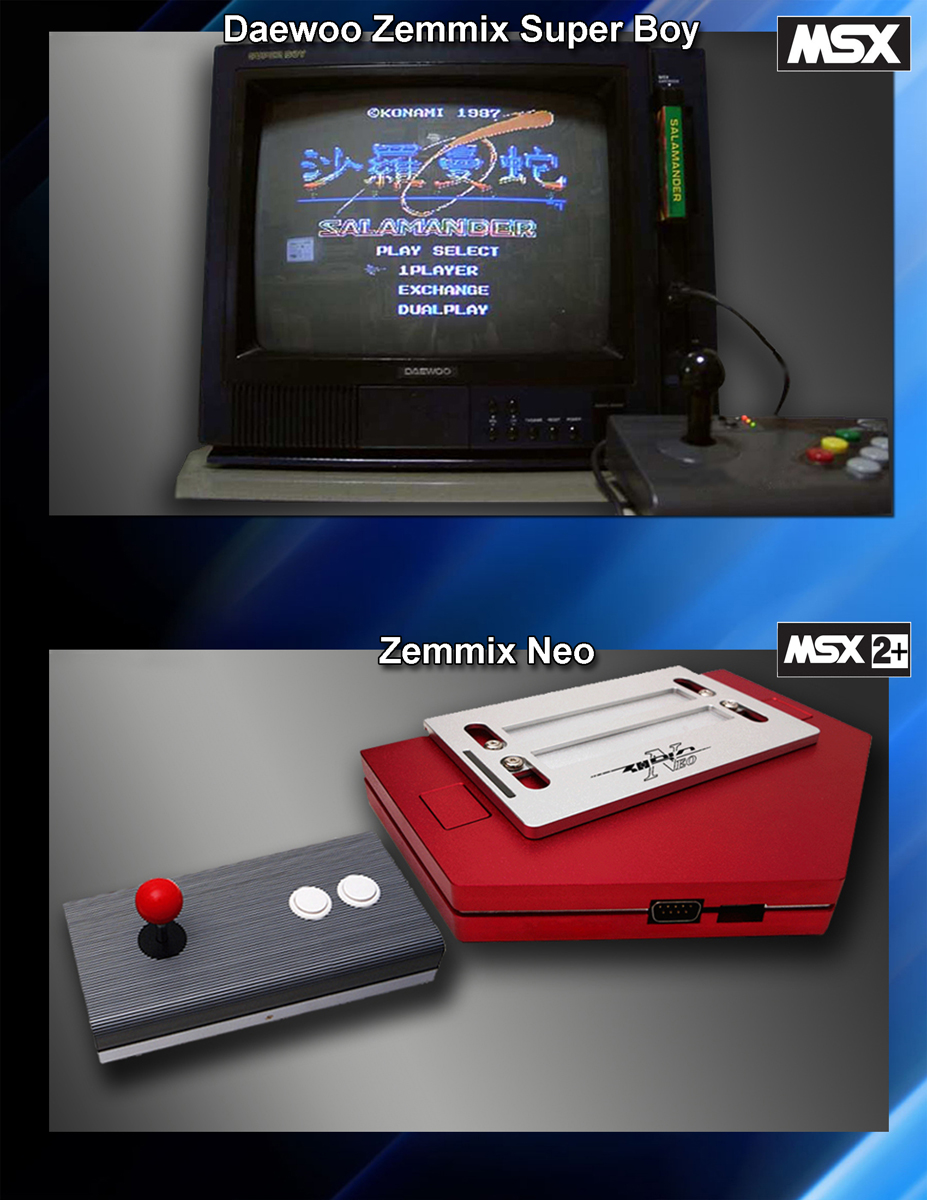 taaudi, it defintiely sounds like you might be thinking of games released on the Daewoo Zemmix. Do any of these look like the consoles you had? http://usamsx.com/slideshow/images/MSX-Binder-Daewoo-Ze#30AC30.jpg http://usamsx.com/slideshow/images/MSX-Binder-Daewoo-Ze#30AC09.jpg http://usamsx.com/slideshow/images/MSX-Binder-Daewoo-Ze#30AC4E.jpg http://usamsx.com/slideshow/images/MSX-Binder-Daewoo-Ze#30FF5E.jpg - (Probably not the bottom red one, lol, as that is the Zemmix Neo created last year by a Korean MSX/Zemmix enthusiast named mygodess, based on the 1-Chip MSX. You can find that mygodess is a pretty active community member at the MSX Resource Center and he might be able to help you identify the games if you post descriptions and screenshots in a thread there if you definitely remember these games being released on a Zemmix / MSX. -Thomas