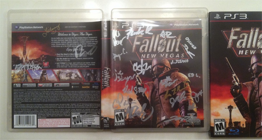 I sold most of my collection off some years ago, including stuff like Panzer Saga, Sui 2, Ninja Five-O, etc. Nowadays I don't own as much, and nothing too rare, so I guess my submission is a copy of New Vegas signed by members of the team at Obsidian.