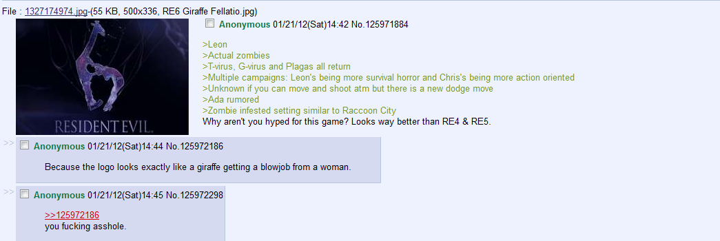 :lol: If CAPCOM did that, RE6 might receive better than normal sales just for that. As for the series as a whole, 1, 2 and 4 were my favorites. RE3 felt more like a pseudo-sequel/gaiden, not a true sequel and 5 was a little meh.