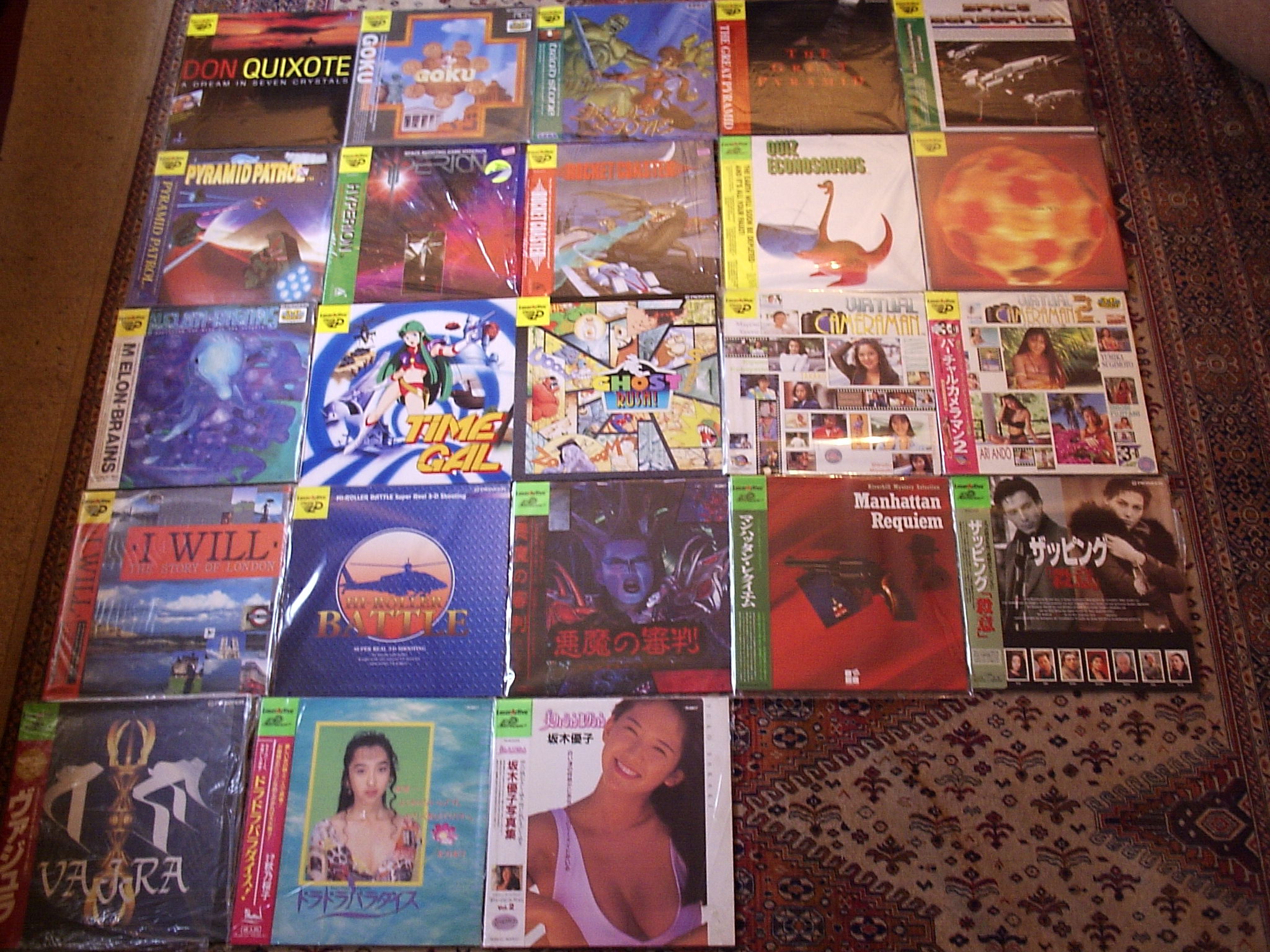 I own all of them,though i still didn't made a pic of 5-6 LA titles (but not all are Mega LDs, most of them are LD-Rom 2..Vajra 2,Angel Mate,Blue Chicago Blues,Billusion Minayo Watanabe...Road Blasters/Road Prosecutor, Back to the Edo,Dr Paolo no Totteoki Video,3D Virtual Australia are Mega LD though, and JB Harodl Blue Chicago Blues exist in Mega LD AND LD-Rom2 form) Here: http://videogamecollectors.com/gallery/Full-Japanese-MD-32X-Collection Or here: http://videogamecollectors.com/gallery/LaseractiveNearCompleteCollection (You can see 17 different Mega LDs together) Unfortunately i don't have running videos to propose