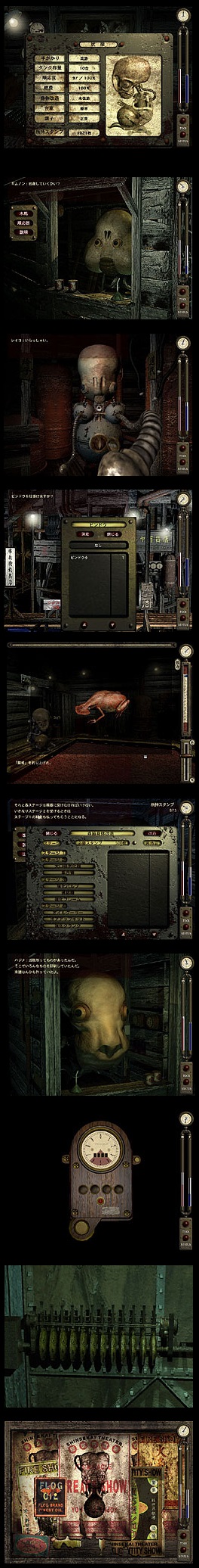 http://www.youtube.com/watch?v=wn-UjprH10c In my best words to describe GARAGE Bad Dream Adventure would be. Surreal Horrific Disturbing Claustrophobic and Alone. 【STAFF】 _____________ [DIRECTOR] TOMOMI SAKUBA [PRODUCER] MASAHIRO IKUTA [Co-PRODUCER] AKIHIKO KAWAI [PROGRAM] AKIYA HAYASHI [3D GRAPHICS] GENGO ITO HIROKI WATANABE [MUSIC] TOMONORI TANAKA _____________ The current site the original official site is gone unless someone could wayback machine it. http://www.t-s-k-b.com/garage_private_edition/ Garage is a japanese pc adventure game where you take the role of a strange on rails robotic organism that explores a mechanical GARAGE like world. The basic gameplay seems resource oriented as the robot has two bars. Interacting with npcs engages some sort of item shop. The game is all pre-rendered and digitized and gives a real 90's feel to it. The music is very solemn and strange. LSD has a similar soundtrack ambiance wise. I really recommend exploring the little site it's got many pictures and odd flash pages it brings up. The game had a limited run similar to the eastern mind game and it's oh so sought after equal Chu-teng or chutten. http://www.t-s-k-b.com/x/mt-search.cgi?tag=garage&blog_id=1 I discovered the creators blog. This link directs you to all his post on the GARAGE game the related art and his shipping of the Private editions (deluxe sets with little books and such). His main blog is all about LAVES like wood laves metal laves. His really big into technical stuff this shows in the game directly. part 1 gameplay http://www.nicovideo.jp/watch/sm13296952 part 2 http://www.nicovideo.jp/watch/sm13313248 I am asking you other user to help me find more info if anyone understands Japanese that'd be amazing. Also Cutten Chu-tem Osamu Sato's lost game is getting tracked down along side garage by a group of fans hopefully something will come of it and someone can play it and write an article. ------------------------------------------------ Thanks and let's discover more obscure pc adventure games. errata OP has more info in later posts. This http://hg101.proboards.com/thread/10484/search-garage-bad-dream-adventure A NEW AUCTION HAS BEEN DISCOVERED -It's been bought we will soon have the game! http://page9.auctions.yahoo.co.jp/jp/auction/k174256431 SIGN THIS PLEASE !!!! http://www.petitionbuzz.com/petitions/garage READ THIS It's a current summeray of 4chan's /vr/'s search for this game and roly poly. https://docs.google.com/document/d/1tY1XzqE8mSWEleEvHO1JfMKWyJIycu1v9Auvccix1vE/edit?pli=1